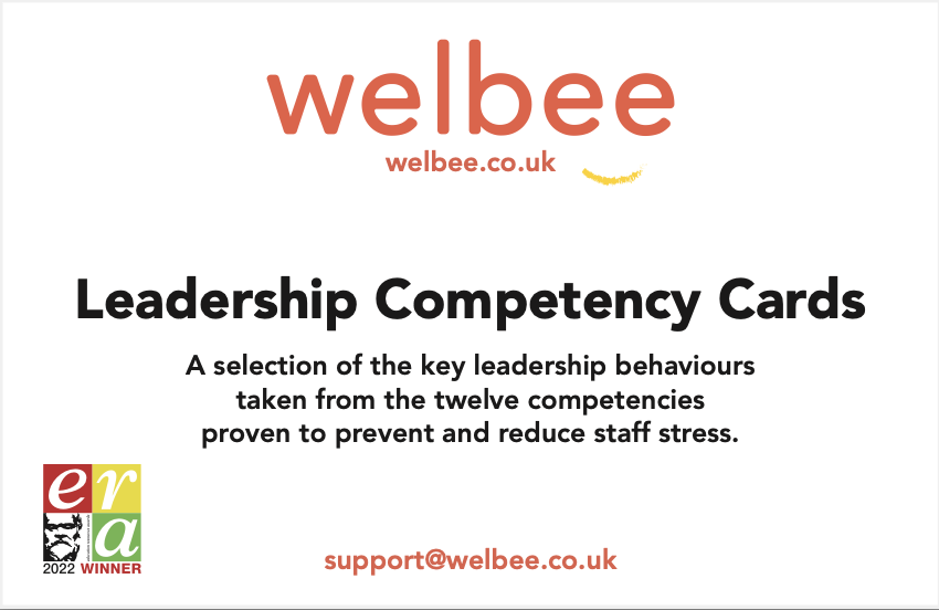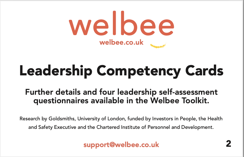 Below are some of the behaviours covered in the above competencies. If you would like to know more, have questions or would like a sample of the leadership competency cards (you can see some below) sending to you, then email support@welbee.co.uk with the subject line ‘Competency Cards’ and we will put some in the post for you.